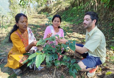 A local Gorkha coffee farmer joins Peepalbot Cooperative, run by local Gorkha people, for the opportunity to earn a fair wage and develop their skills to increase their farm's income in the long run.