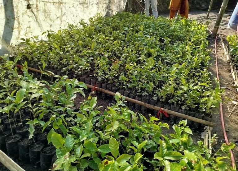 They tend existing coffee plants and have the option to buy more coffee plants at a fair price from the Cooperative's wholly-owned nursery.