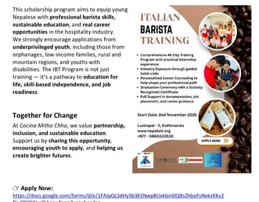Subscribe to our newsletter and get the latest updates from Cocina Mitho Chha straight to your inbox. Be the first to hear about new projects, inspiring stories, events, and ways you can support youth empowerment and sustainable communities in Nepal. Don’t miss out — join our growing community today!
